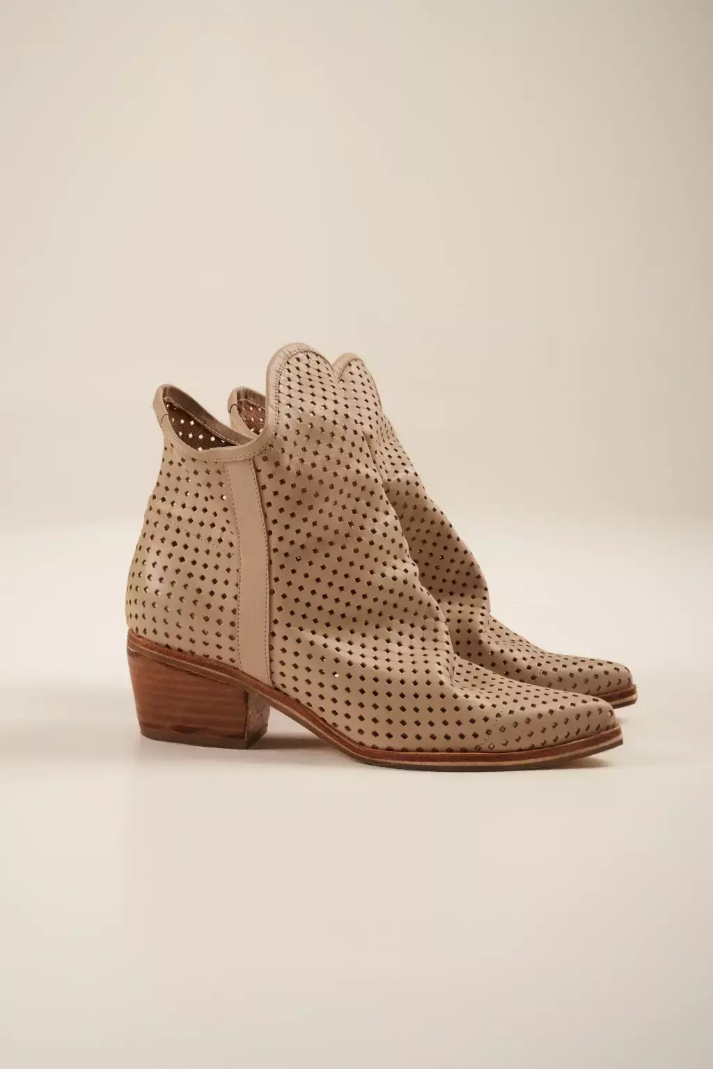 ¡Presentamos la BOTINETA JORAM, la botita caña baja que revolucionará tu estilo! Confeccionada en cuero genuino, esta botineta combina elegancia y comodidad en cada paso. Su diseño distintivo incluye un taco bajo de madera, que aporta estabilidad y un toque natural, mientras que las delicadas estrellitas caladas le otorgan un detalle único y sofisticado.